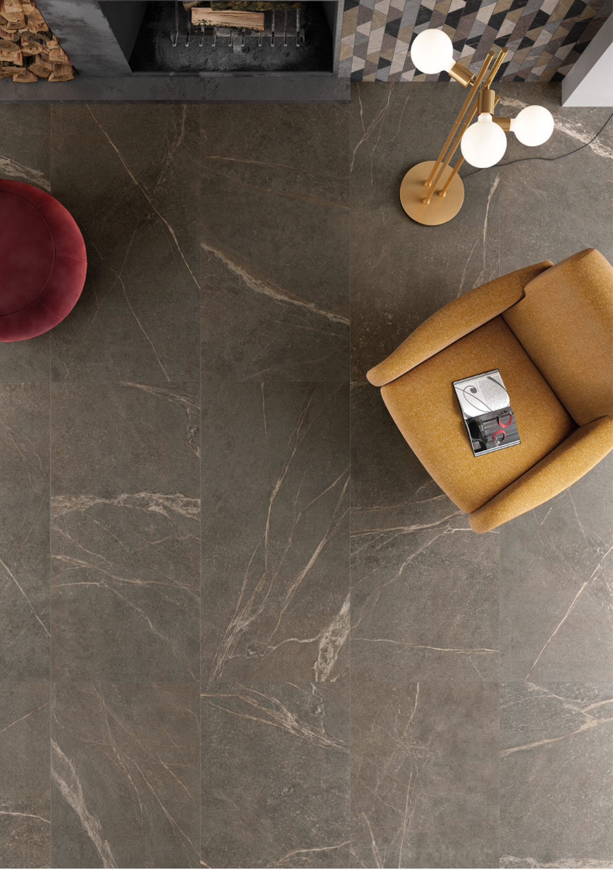 Ny serie hos os. En varm stonelook inspireret flise med messing lignede åre i sig. Denne flotte varme flise er en R10 overflade som gør at den ikke bliver så glat når den bliver våd.